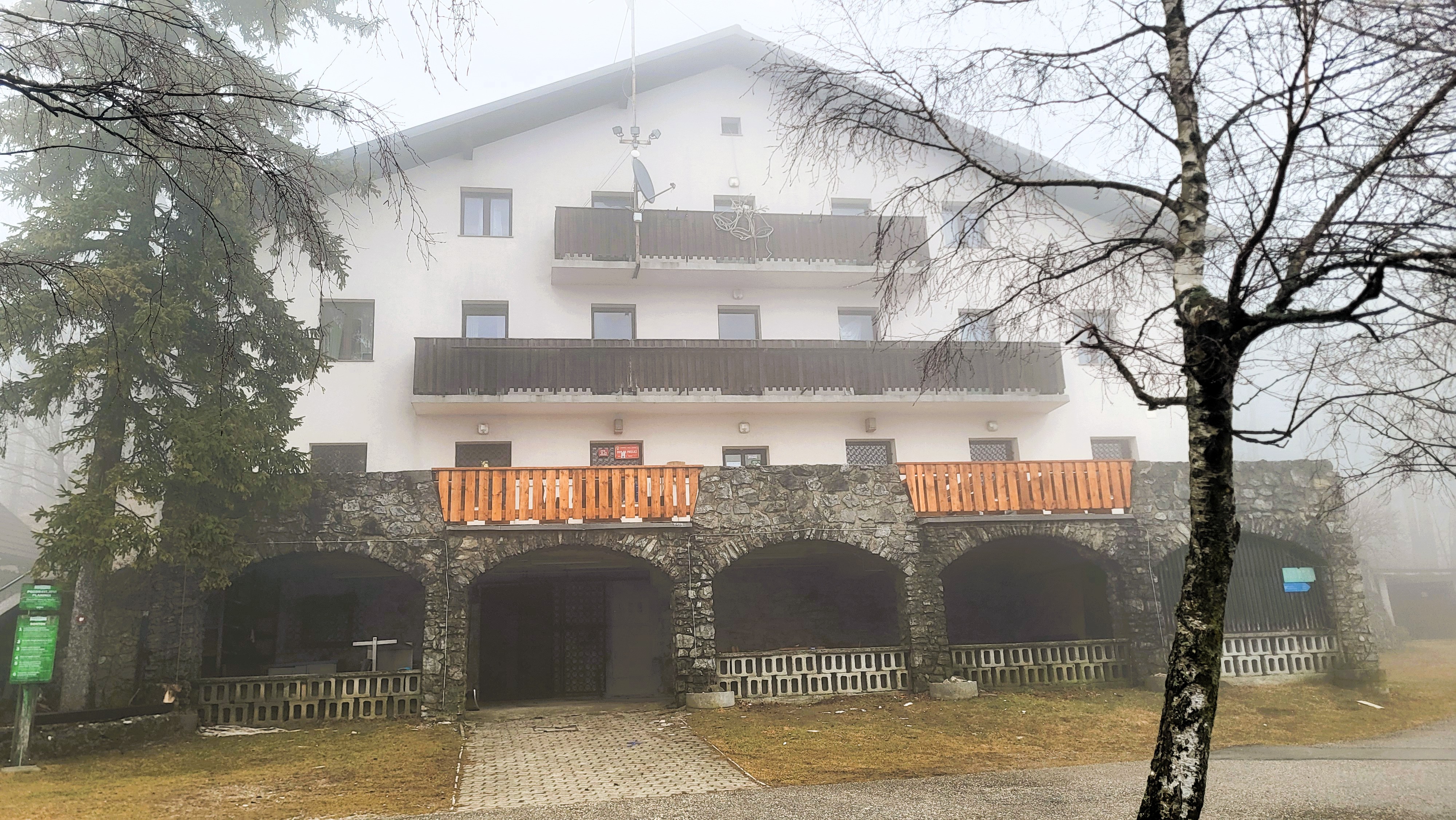 Vrh Mrzlice se nahaja tik nad planinskim domom. Med vzpenjanjem nas je poškropil dež in pozdravil veter. A mi se ne damo. Cilj smo dosegli, razgled pa bomo uživali kdaj drugič.